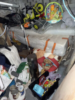 Les caves contenaient principalement des meubles anciens, des cartons, des matériels divers et des déchets non recyclables. Le volume total estimé avoisinait les 15 mètres cubes, générant un encombrement conséquent et limitant l’accès en toute sécurité.